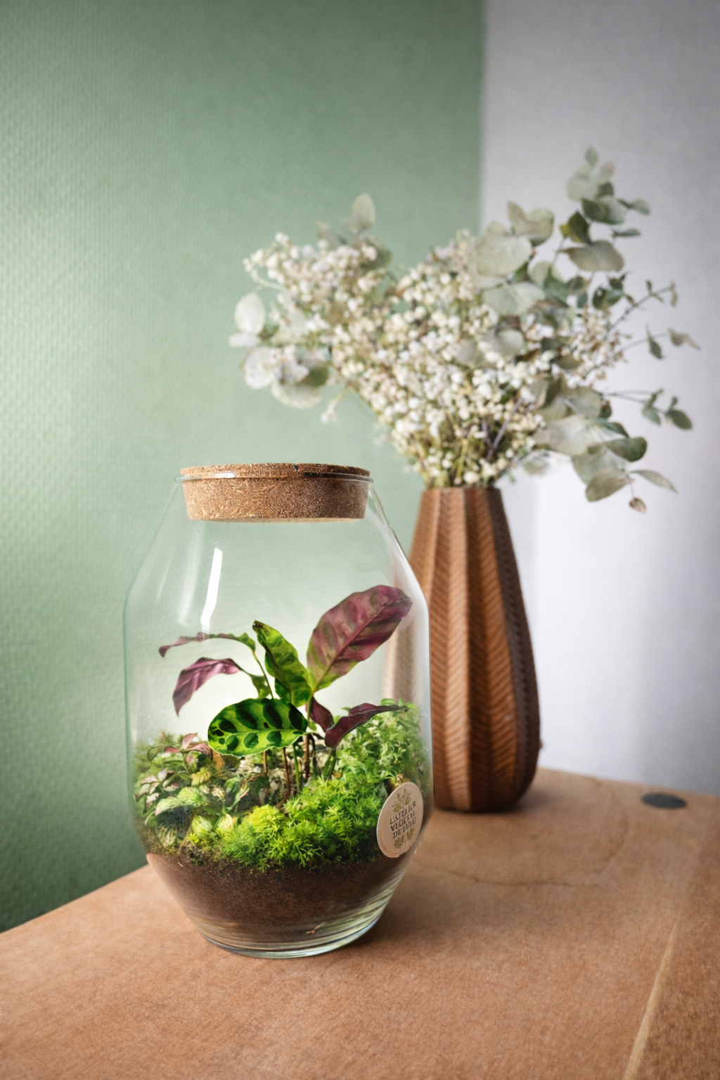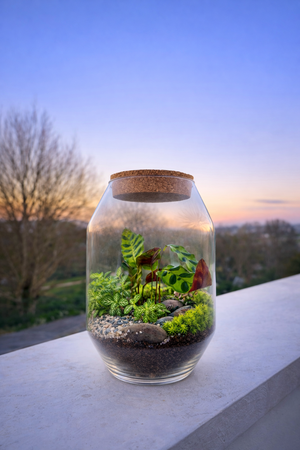 Ce terrarium est parfait pour un salon, un bureau ou une étagère lumineuse, et s’adresse à celles et ceux qui recherchent un terrarium facile d’entretien. Il peut être choisi comme cadeau végétal simple et élégant, idéal pour offrir une touche de nature durable.